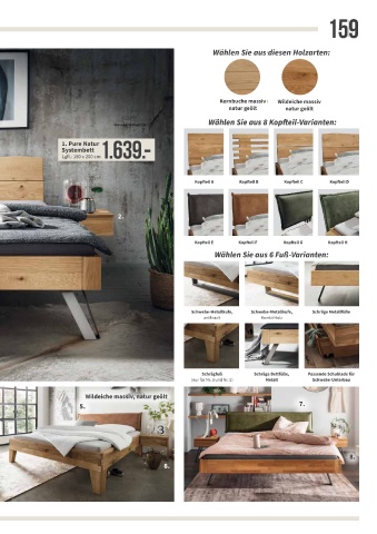 Wildeiche massiv, natur geölt Weitere Zusammenstellungen aus diesem Programm siehe Seite 156 - 157. Schrägfuß Schräge Bettfüße, Passende Schublade für