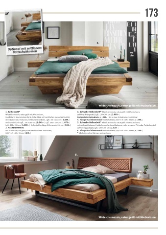 1. Balkenbett* 3. Schwebe-Balkenbett* Wildeiche massiv, natur geölt mit Wuchsrissen,