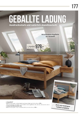 B/H/T: 268 x 221 x 65 cm: | 3.719.- | * Bett ohne Rahmen und Auflagen, auch erhältlich in den Liegeflächen 140 x 200, 160 x 200 und 200 x 200 cm. Auch mit niedrigem