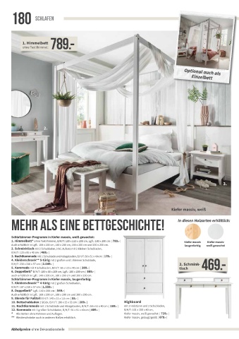 * Alle Betten ohne Rahmen und Auflagen. Kiefer massiv, weiß gewachst: | 729.- | Kiefer massiv, laugenfarbig
