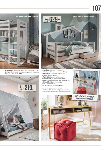 Kommt ins In diesen Holzarten 1. Etagenbett* mit gerader Leiter, Lgfl.: 2 x 90 x 200 cm: | 579.- | 3. Hausbett Kiefer massiv, weiß lackiert,