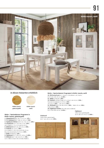 In diesen Holzarten erhältlich: Wohn- / Speisezimmer-Programm in Kiefer massiv, weiß