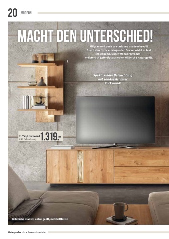 2. TV-/Lowboard 1.319. - 4. Hängeschrank 1-türig 3 höhenverstellbare Holzböden hinter der